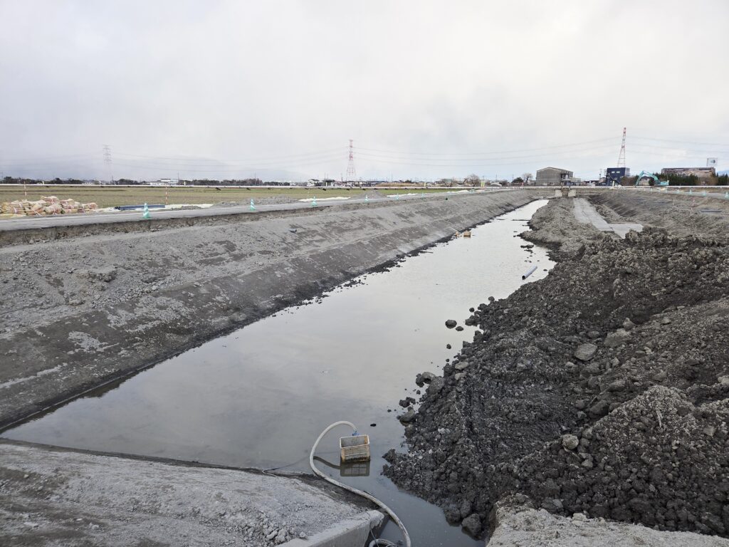 26年01月13日 なかなか・・・ お疲れ様です。 姉川線(姉川工区)工事の近況報告です。 現在、法面整形と河床掘削を行っています。 水路内の土量が多く、なかなか先に進みません。 はやる気持ちはありますが、事故、けが等がないようがんばっていきたいと思います。 土木部 西田